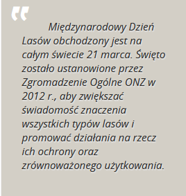 Międzynarodowy Dzień Lasów przypomina, że lasy są jednym z najcenniejszych zasobów przyrodniczych i gospodarczych. Dostarczają surowców, wspierają rozwój gospodarki, chronią środowisko i poprawiają jakość życia ludzi.